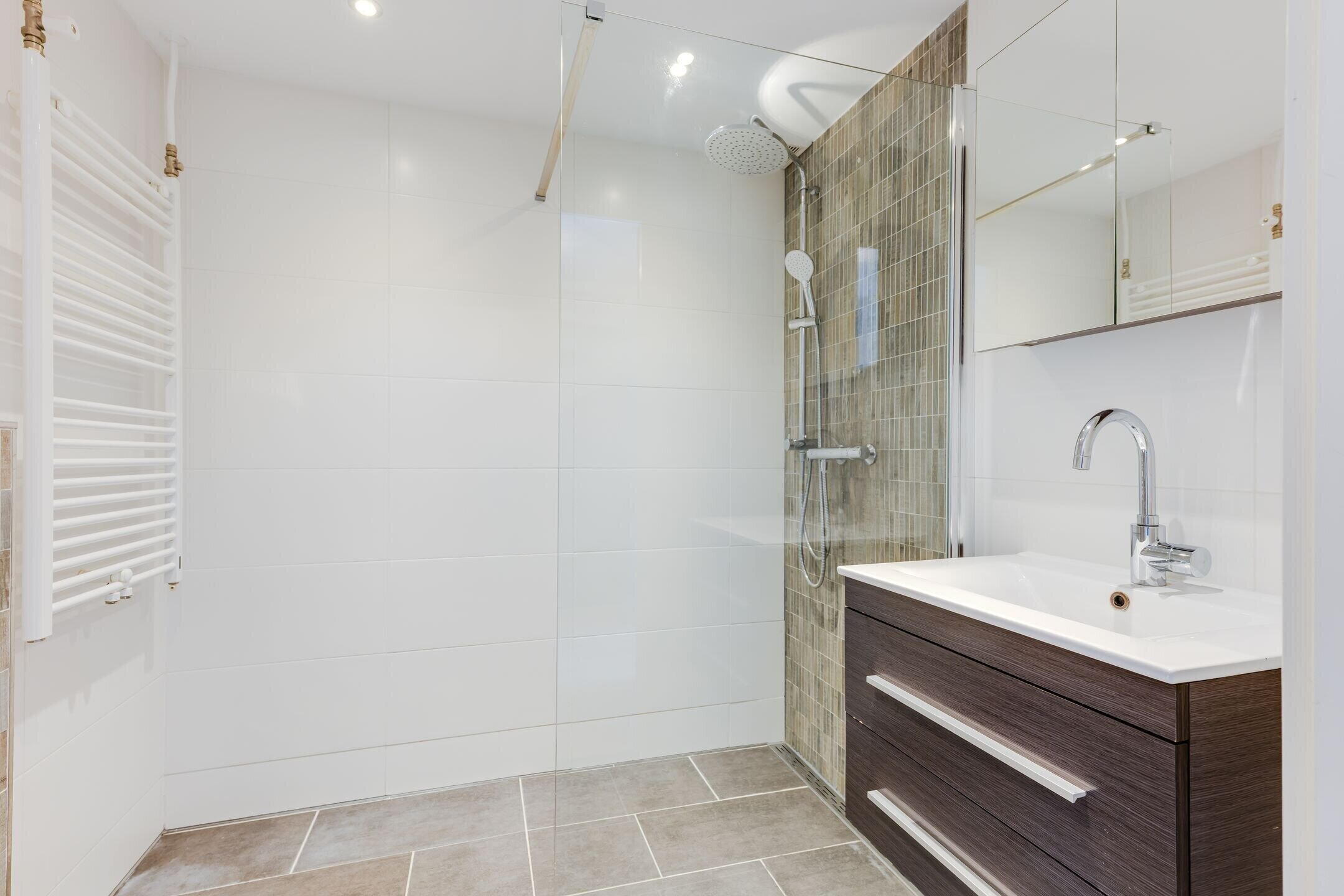 In de hal bevindt zich de garderobe, het moderne toilet en de meterkast. De moderne keuken is o.a. uitgerust met een inductiekookplaat, vaatwasser, en een boiler voor direct warm water.