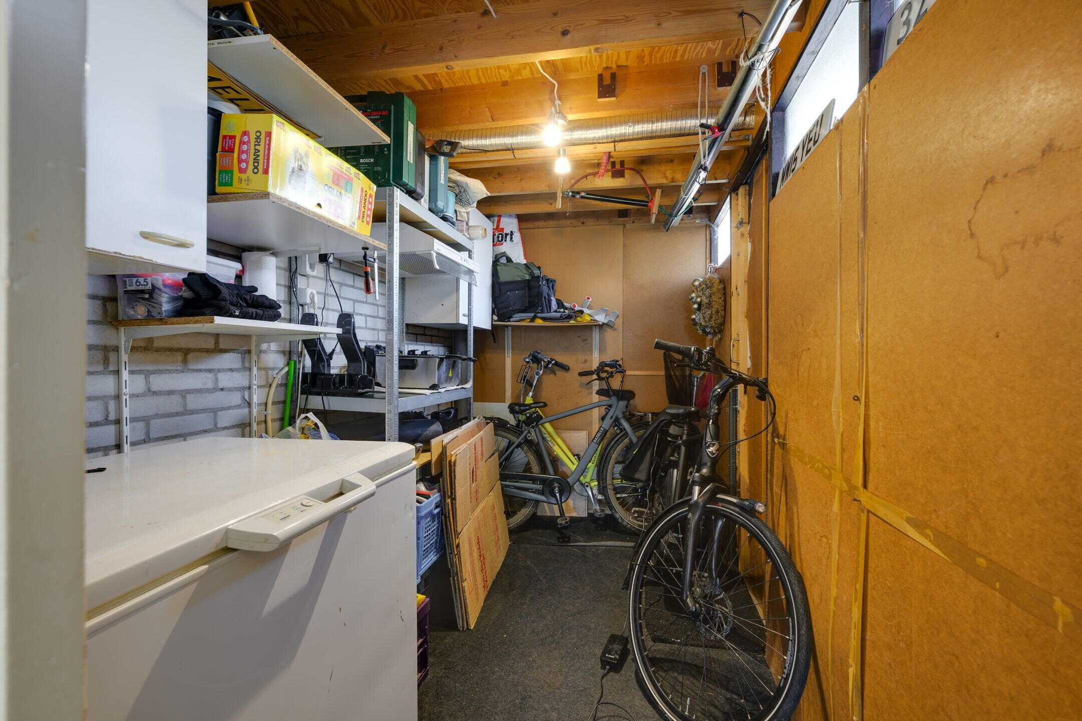 Via de ruime voortuin kom je de woning binnen of de berging (welke ook vanuit het huis te betreden is). De berging is voorzien van ruim voldoende elektra voor bijv. een frituurpan, vriezer, e-bikes, etc.